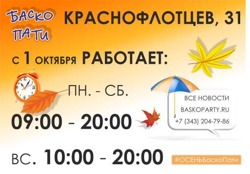 с 1 октября работает с пн. по сб. с 09:00 до 20:00, в вс. с 10:00 до 20:00!