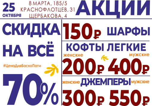 25 октября СКИДКА НА ВСЁ 30%!