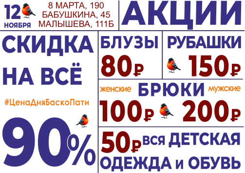 г. Екатеринбург, 8 Марта, 190, Бабушкина, 45, Малышева, 111б.