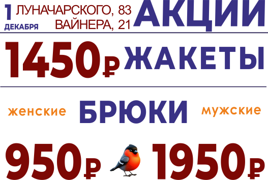 +АКЦИИ: ЖАКЕТЫ 1450₽! БРЮКИ женские 950₽, мужские 1950₽!