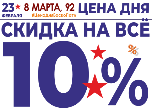 23 февраля СКИДКА НА ВСЁ 10%!