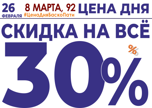 26 февраля СКИДКА НА ВСЁ 30%!