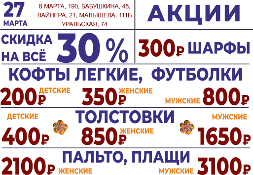 27 марта СКИДКА НА ВСЁ 30%!