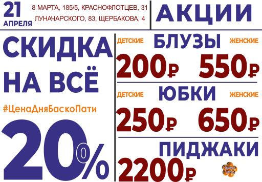 21 апреля СКИДКА НА ВСЁ 20%!