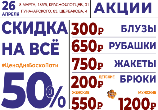 26 апреля СКИДКА НА ВСЁ 40%!