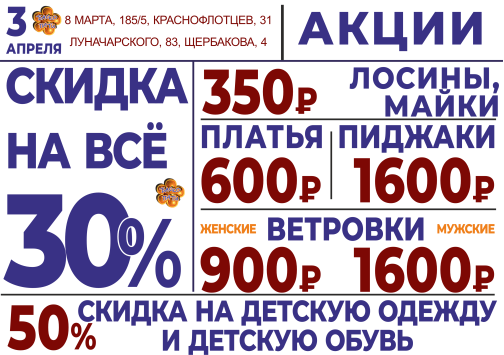 3 апреля СКИДКА НА ВСЁ 30%!